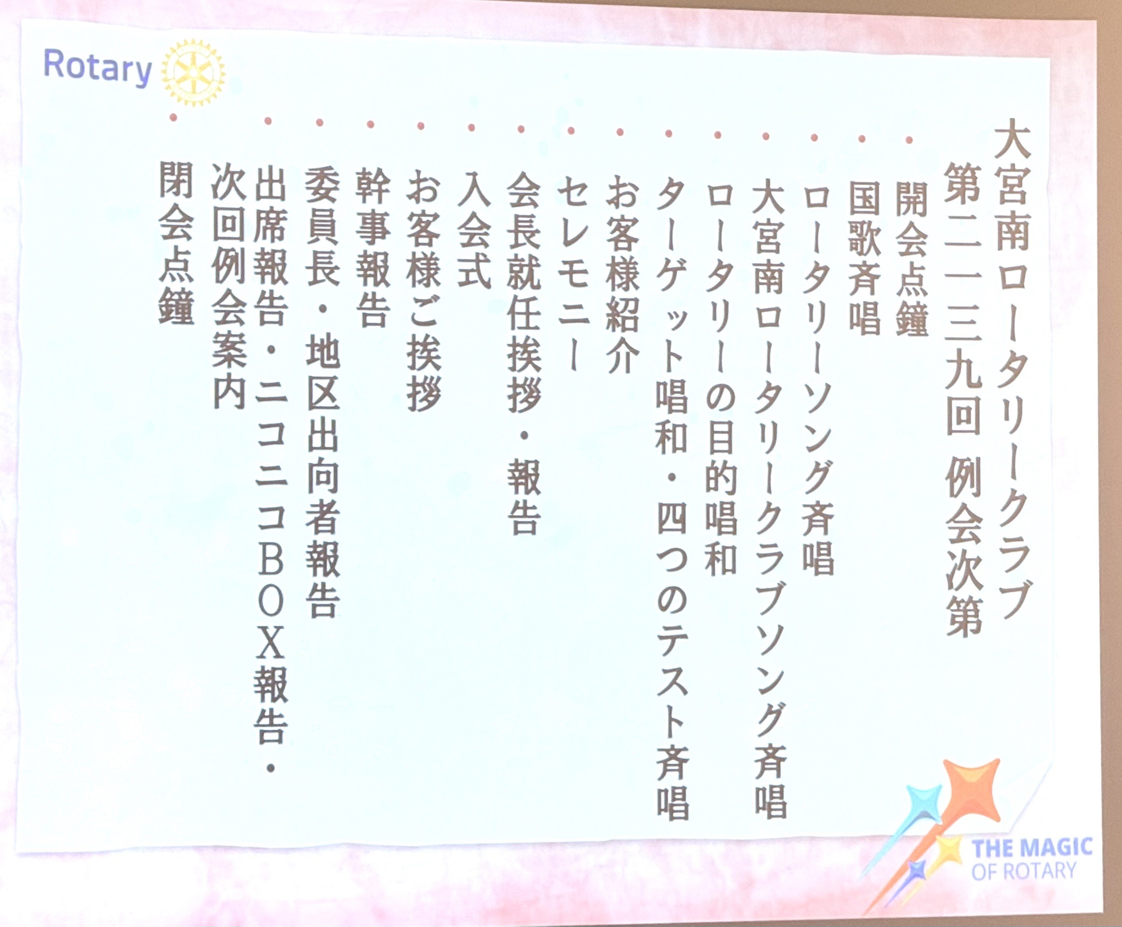 私たち大宮南ロータリークラブは、本日7月4日(木)に、新年度(2024-25年度)初例会を開催しました!